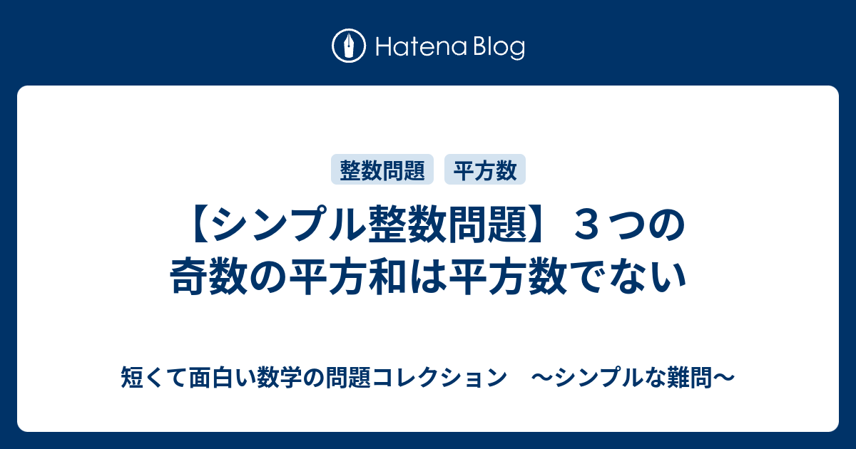シンプル整数問題 3つの奇数の平方和は平方数でない 短くて面白い数学の問題コレクション シンプルな難問